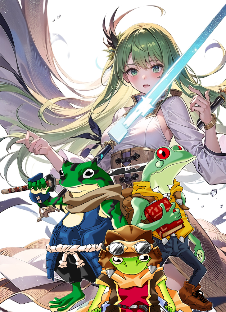 主人公の少女シオリは三匹のカエル族の若者たちに助けられ、姫神白姫として覚醒、救国の聖女へと成長していきます。