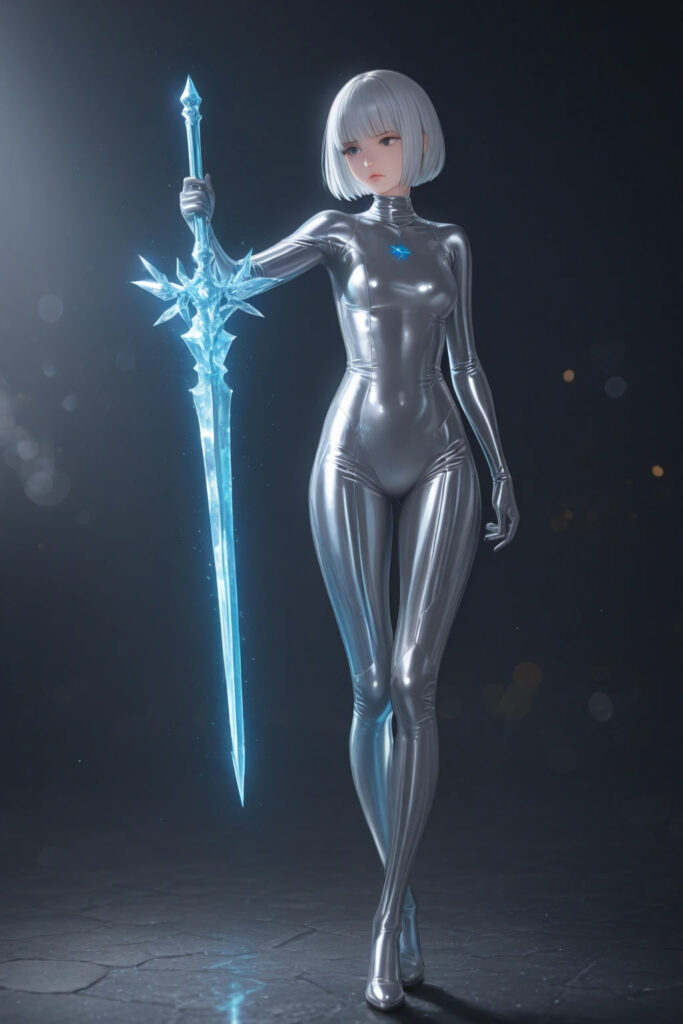 今の銀姫は全身を銀色のスーツに身を固め、あろうことか手にはクリスタルに輝く剣を捧げ持ったままだ。