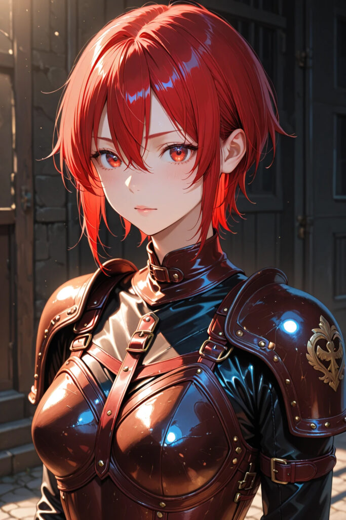 真新しい革の鎧を着て、恥ずかしそうに顔を赤らめている。