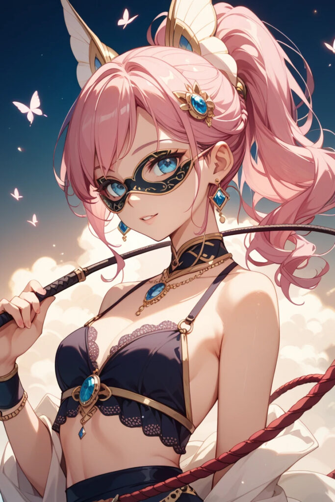 夜にはばたく蝙蝠を彷彿とさせるボンデージ衣装と、気が狂いそうなほどにピンクな髪が特徴の桃姫。