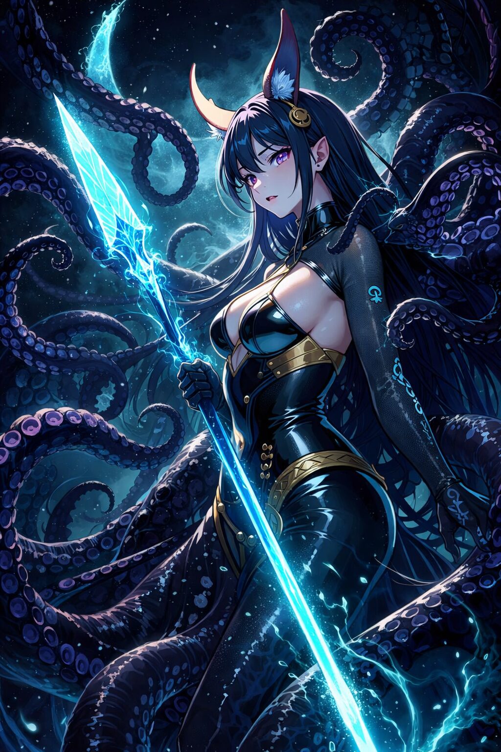 竿状の柄も、剣状の刃も、深海を思わせるほどの深く透き通った青一色。
